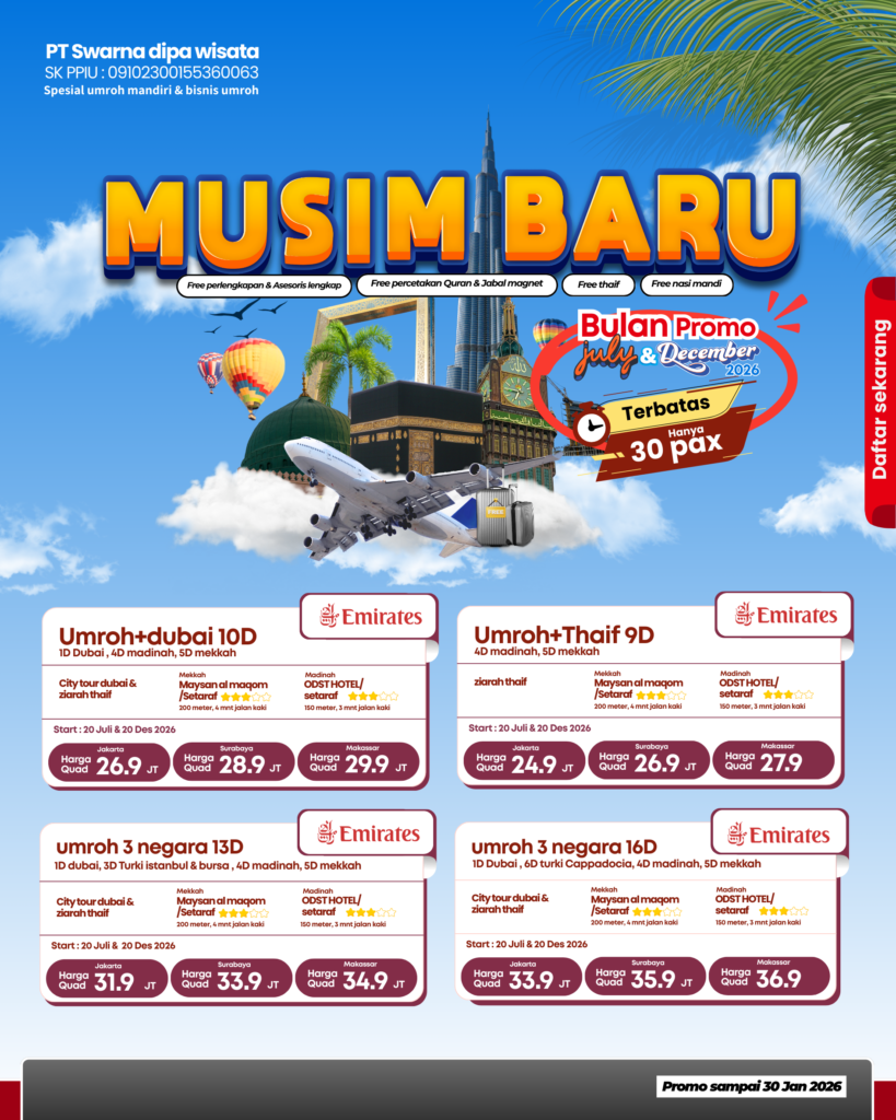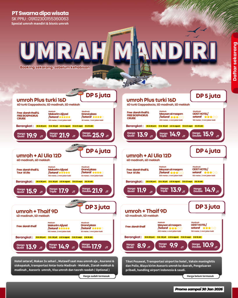 Dengan paket dari Rihlah Imani, harga bersahabat dan pastinya umrohmu bakalan aman dan menyenangkan